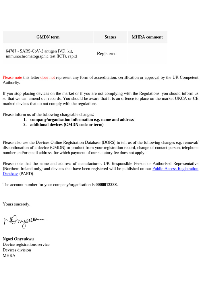 新冠抗原-英国MHRA注册
