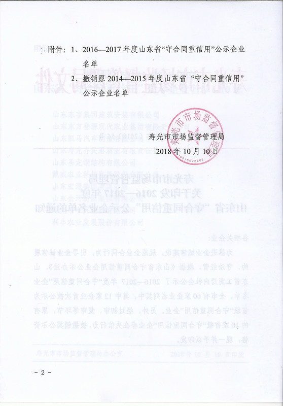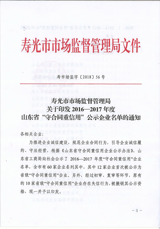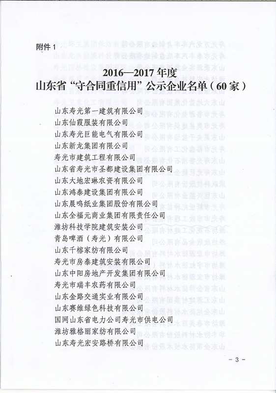2016-2017年度山東省守合同重信用公示企業名單